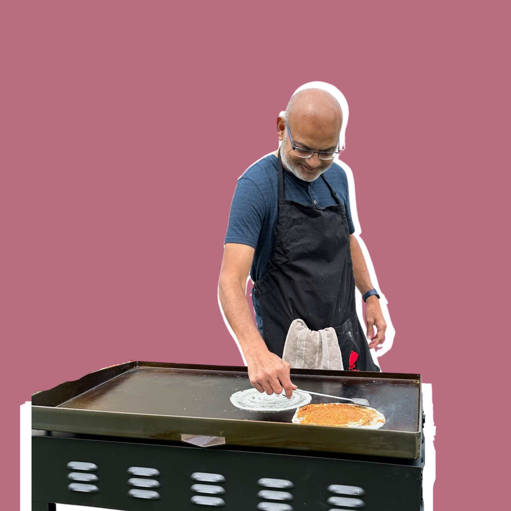 Meet Vinodh, our authentic South Indian cuisine expert, hailing from the small town of Tindivanam in Tamil Nadu. Having grown up on idli, dosa, vada, and other tiffin delicacies, Vinodh knows his way around the kitchen. When he moved to the US in 1997, he was shocked by the lack of good dosas - so he started making them at home. Fast forward 20 years, and Vinodh has mastered the art of making delicious dosas that his family and neighborhood kids love. Now, he's bringing his passion for authentic South Indian cuisine to larger gatherings, and there's nothing he loves more than receiving genuine compliments from satisfied customers. Don't be fooled by mediocre sambar and chutney - Vinodh's dishes are the real deal, guaranteed to transport you to the streets of Chennai!
